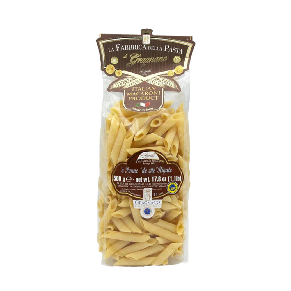 Penne de Zite Rigate is a classic, ridged penne that is a great staple to have in your pantry all year round. It’s ridged surface will absorb all the flavors of your favorite sauce.